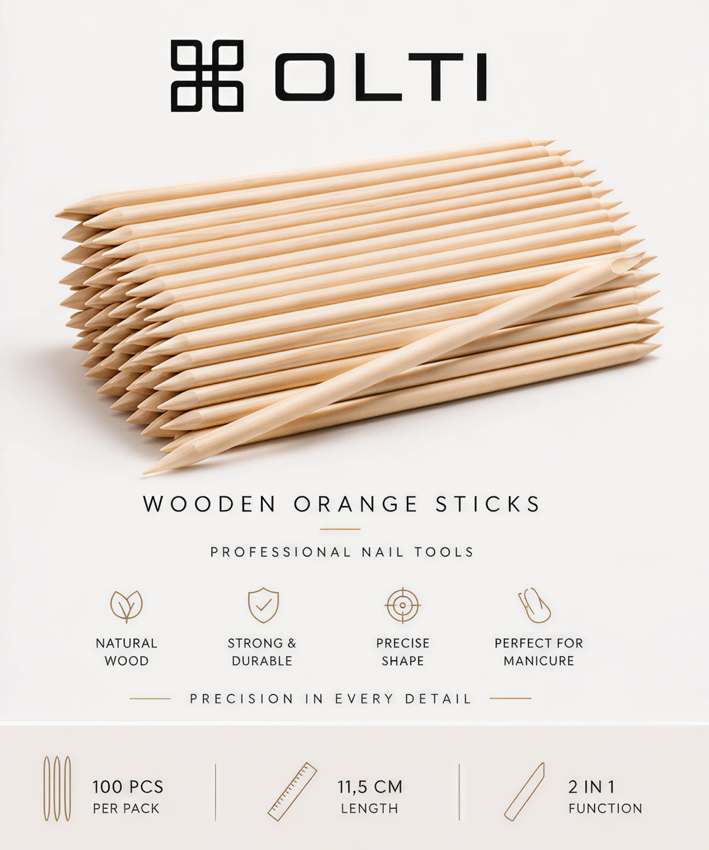 Profesjonalne patyczki drewniane OLTI to podstawowe narzędzie w każdej stylizacji paznokci – zarówno w salonie, jak i w pracy mobilnej. Wykonane z wysokiej jakości naturalnego drewna, zapewniają precyzję, komfort pracy i pełną kontrolę nad detalem.