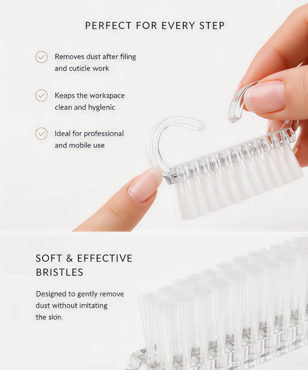 Miękkie, gęste włosie delikatnie oczyszcza skórę i paznokcie, nie powodując podrażnień. Ergonomiczny kształt zapewnia wygodę użytkowania, a jednorazowe zastosowanie gwarantuje najwyższy standard higieny.