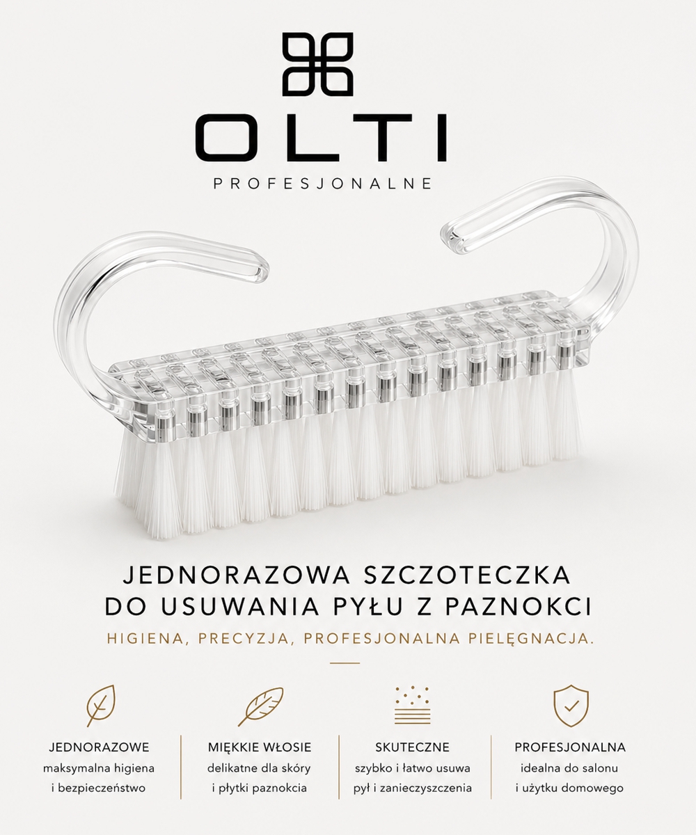 Profesjonalne szczoteczki do odpylania OLTI to niezbędne narzędzie w codziennej pracy stylistki paznokci. Skutecznie usuwają pył powstały podczas piłowania, przygotowując płytkę paznokcia do dalszych etapów stylizacji.